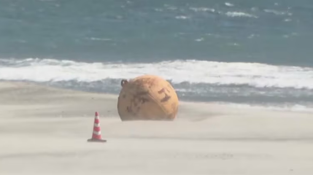 报道称,该不明球状物体直径约1.5米,呈现橙褐色,疑似铁质,两端有凸起的把手。警方赶往现场调查,封锁了周边200米范围。目前,尚不清楚该球体是何物体。日本御前崎海上保安署人员也表示疑惑,称“以前从未见过”。
