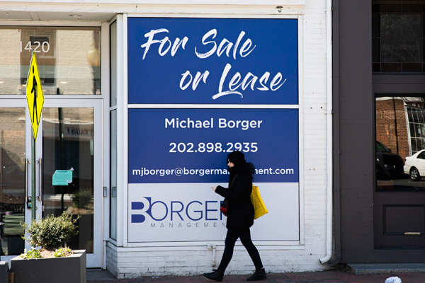 3月14日,在美国华盛顿,一名女子从房屋租售广告前走过。