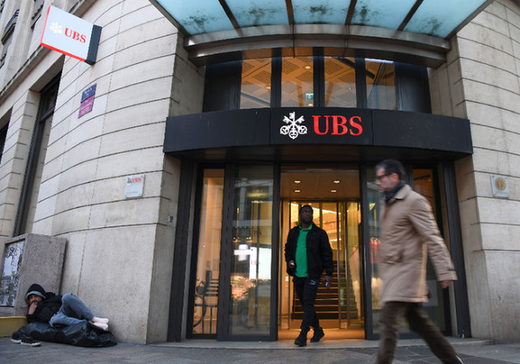 3月20日,在瑞士日内瓦,人们从瑞银集团门前走过。
