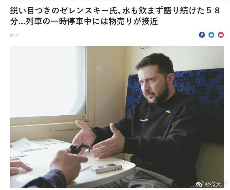 乌克兰总统泽连斯基23日访问南部赫尔松后,在返回基辅的火车上接受了日本《读卖新闻》的专访。(中国青年网青蜂侠)