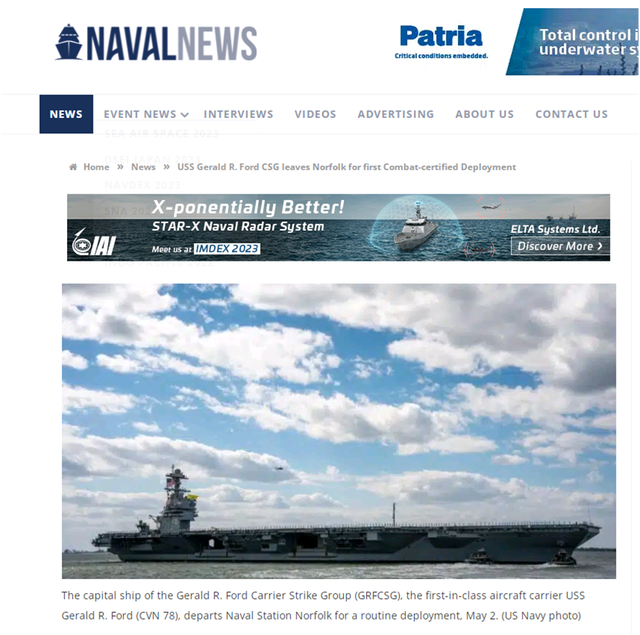 作为美国最强大和最先进的航母,这是“福特”号自2019年服役以来第二次出海部署,也是它首次执行战备巡航任务。去年该航母曾在大西洋进行了首次部署,并与欧洲盟友的海军举行了联合演习,但就连美国海军也承认,那次短期部署只是对该航母系统进行的“压力测试”而已。