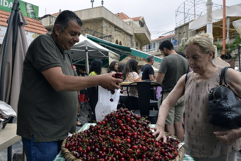 6月11日,人们在黎巴嫩哈马纳镇举办的樱桃节上购买樱桃。