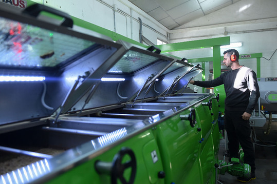 西班牙是全世界最大的橄榄油生产国之一。今年,西班牙的橄榄种植业遭受高温天气和干旱影响,产量下降,致使橄榄油价格上涨。图为近日男子在西班牙卡塞雷斯的一处橄榄油工厂内工作。(来源: 经济参考报)