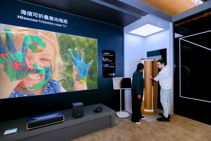 今年AWE上,全球首款可折叠激光电视十分吸睛。据了解,可折叠激光电视是基于超百吋电视“入户难”的用户痛点而推出,重点解决大屏入户的“最后一公里”,让100英寸甚至120英寸的大屏也可以轻松入户。除此之外,升降卷曲激光电视也引发现场观众围观。按下“机关”,一键就能让屏幕自由卷曲升降,可收纳隐藏。据悉,这款电视采用主机与屏幕模块化分离设计,可自由组合、自由搬动。作为国家重点扶持的产业,激光显示似乎正迎来场景爆发时代。另据介绍,海信激光电视在美国的零售价格进入2000美金至5000美金高端价格带,销量持续提升。