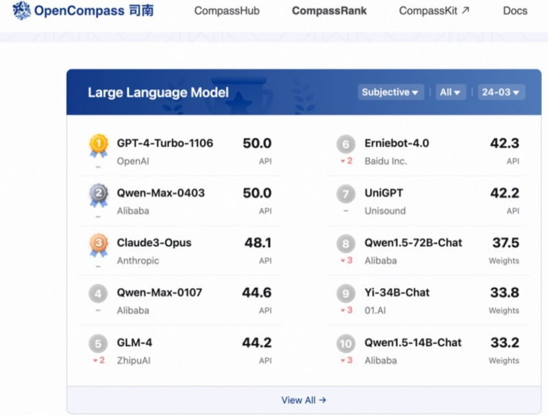 通义72B、110B开源模型都曾登顶OpenLLMLeaderboard榜首。在开放研究机构LMSYSOrg推出的基准测试平台Chatbot Arena上,通义72B模型多次进入“盲测”结果全球Top 10,创造了国产大模型的先例。