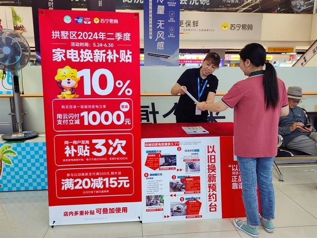 在杭州一家苏宁易购门店,市民李女士正在挑选新家所需的家电。“我们计划11月份搬进新家,之前线上618买了冰箱,赶上家电换新补贴,正好看看还没买的家电。”看重能效和智能体验的她最终选了一台洗碗机和洗烘套装,通过“以旧换新”和多重优惠,成功省下了近1万元,“享受了近7折优惠,感觉非常划算。”