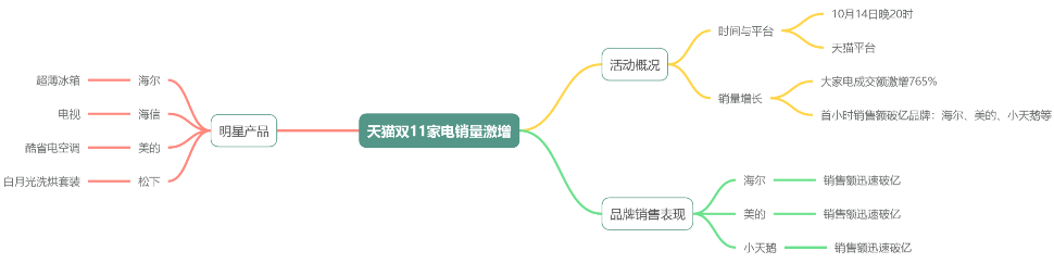 品牌表现:多个知名品牌表现抢眼,海尔、美的、小天鹅等品牌的销售额迅速突破亿元。其中,海尔的超薄冰箱、海信的电视、美的的酷省电空调以及松下的白月光洗烘套装等明星产品,成交量在短时间内就突破了千万大关。