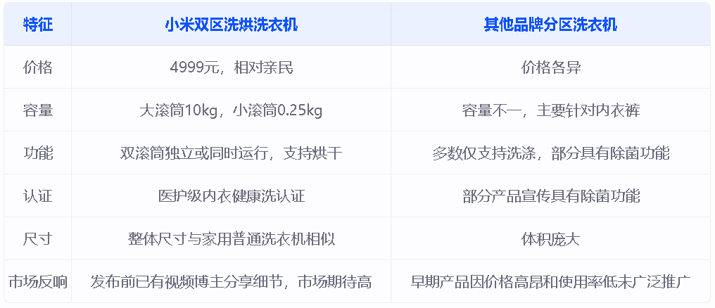 通过以上对比可以看出,小米双区洗烘洗衣机在价格、功能、尺寸等方面具有竞争优势,有望在细分市场中占据一席之地。