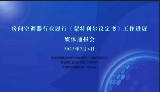 2022年,值《关于消耗臭氧层物质的蒙特利尔议定书》(以下简称“蒙约”)缔结35周年。在“蒙约”框架下,中国房间空调器行业为逐步淘汰含氢氯氟烃物质(HCFCs)进行了大量富有成效的工作;2021年9月15日,伴随《 <蒙特利尔议定书>基加利修正案》 在我国的正式生效,我国房间空调器行业再度开启协同应对 HCFCs淘汰与氢氟碳化物(HFCs)削减的双重履约任务。为总结行业履行“蒙约”的进展和成果,落实《基加利修正案》管控任务,实现行业绿色低碳发展,中国家用电器协会会同生态环境部对外合作与交流中心、联合国工业发展组织于7月6日联合召开了房间空调器行业履行《蒙特利尔议定书》工作进展媒体通报会。