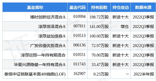 其中持有数量最多的基金为博时创新经济混合 A,目前规模为 3.51 亿元,最新净值 1.0032(10 月 27 日),较上一交易日下跌 1.93%,近一年下跌 2.06%。该基金现任基金经理为田俊维。(来源:证券之星 )