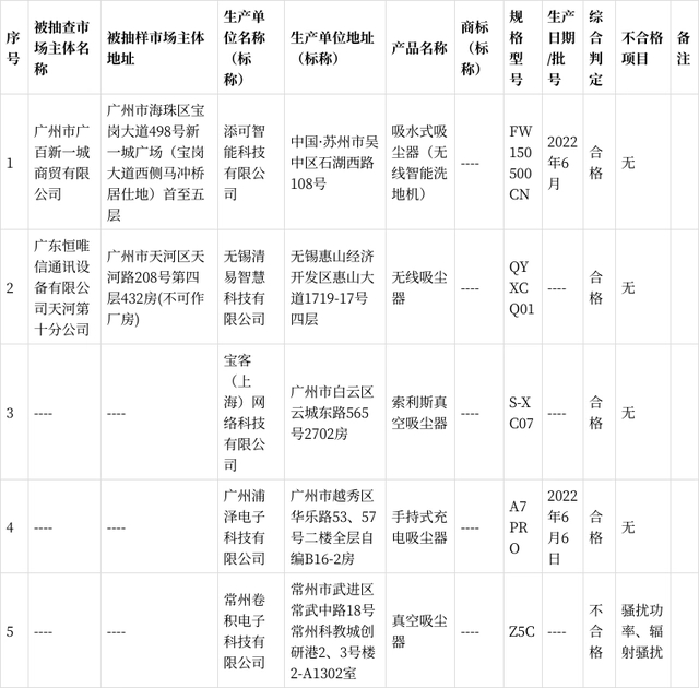 据广州市人民政府网站2023年3月15日消息,广州市市场监督管理局发布2022年广州市真空吸尘器产品质量监督抽查结果