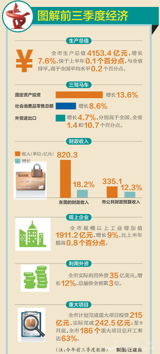 昨日召开的全市前三季度经济形势分析会透露,前三季度全市生产总值4153.4亿元,增长7.6%,快于上半年0.1个百分点,与全省持平,高于全国平均水平0.2个百分点。