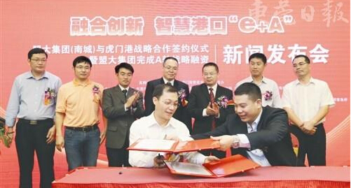 昨日,在市商务局、虎门港管委会、南城街道办等领导和业内人士的见证下,“融合创新 智慧港口 e+A”虎门港集团与盟大集团战略合作签约仪式在莞举行,全国首个“临港O2O跨境电商综合服务平台”也即将正式亮相。