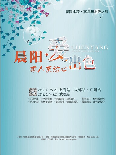媒体的关注,使得水漆成为了时下涂料行业的“新宠”,也被认为是未来涂料行业的发展方向。正所谓“爱屋及乌”,水漆的火热,也使得与之相关的活动也成为焦点事件。如日前晨阳水漆即将于4月25日至26日在上海五角场万达广场、广州白云万达广场、成都锦华万达广场;5月1日至2日在武汉汉街万达广场举行的晨阳水漆嘉年华活动,便备受广大网友关注。