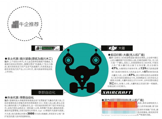 比如,占全球半壁江山的大疆就落户在东莞松山湖。在美国商用无人机市场,大疆已经占据了主导位置,所占份额为47%,大幅领先于竞争对手。在129家已获得监管部门批准可使用无人机的企业中,有61家使用的是大疆无人机,占比为47%。知情人士称,大疆科技正在进行新一轮融资,估值达到100亿美元。