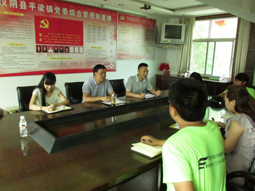 初到平梁,公车上偶遇的一位婆婆听闻我们是农村法律援助调研实践团,热情地为我们引路带路,她激动的讲到:“大学生可以帮我们了,你们终于来了。”这是来自村民的呼唤,同时也带给我们深深的震撼。抵达平梁,短暂的休息后,镇政府为我们举行了见面会。会议由党委副书记欧立主持,李涛镇长,赵洁副镇长及平梁镇中心小学朱老师出席本次会议。会上,李涛镇长就平梁镇现状给我们做了详细介绍:平梁镇地处汉阴县城以西7公里处,主要发展苗木花卉产业,是一个农业大镇,镇政府的领导班子始终凭借着过硬的政治素养和充足的精气神连年被县里评为优秀镇。团结的平梁镇政府工作人员和淳朴、善良的村民共同为“建设文明和谐新平梁”贡献着他们的力量。随后,镇政府对我们的到来表示热烈的欢迎,他们表示将尽其所能为我们提供最大的支持,希望我们能够运用自己的理论所学为促进文明和谐法制村建设贡献自己的一份力量。最后,镇长对我们提出了殷切希望:大学生应多学多问多思多悟,为社会主义建设而奋斗。通过镇长的介绍,我们对平梁镇的社会现状,民生热点有了更深入的了解,这为接下来的实地调研及走访带来极大的便利。