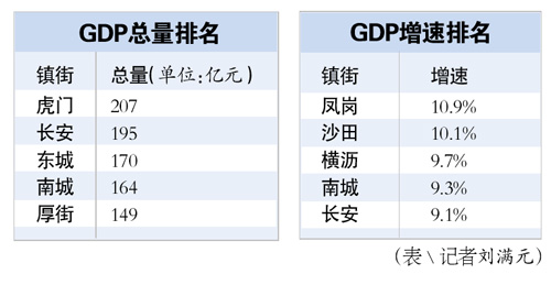 记者通过收集整理各镇街上半年经济形势分析会披露的数据发现,今年上半年,“东莞GDP十强”十强排名几乎没有多大变化,虎门、长安、东城、南城和厚街位居前五,其中虎门的GDP总量为207亿元。