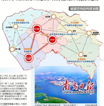 中心组团将以“市区、松山湖(生态园)”为核心建设全市最具竞争力的高品质综合服务中心和创新中心。