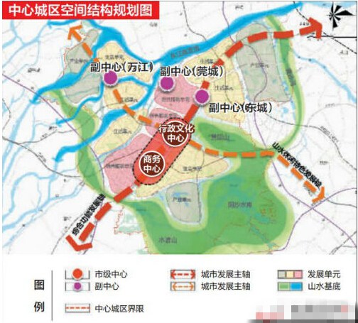 东莞未来的主中心,而东城与莞城、万江一起被排到了城市副中心的行列当中。