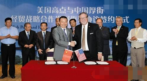 近日,由美国北卡罗来纳州(以下简称北卡州)参议员汤米·塔克等带领的美国北卡高级政商考察团到访厚街,在当天举办的“美国高点与中国厚街经贸战略合作发展框架协议签约仪式”上,双方政企共签订3项合作协议。根据协议,厚街与北卡州海波因特高点镇确立互为战略合作伙伴关系,将就家具、会展等方面的公私领域开展深入长期合作。作为两地合作的开篇,厚街名家具展组委会将启动中国家居馆项目,项目一期计划在美国高点租用3万平方英尺的场地,预计投资300万元打造中国家居馆,预计2016年10月可开放投用。