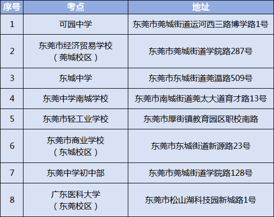 东莞市2024年全国硕士研究生招生考试考点安排表