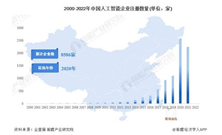 根据中国企业数据库企查猫,2020年之后,AI企业数量出现爆发式增长,注册企业数量每年增长超过2000家。