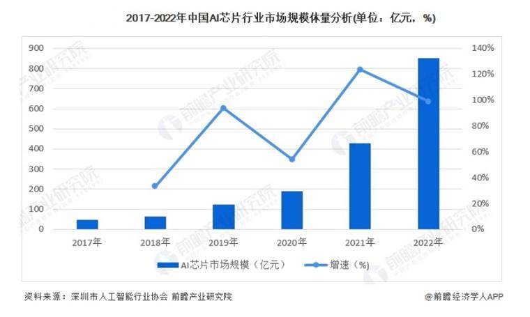 在政策、市场、技术等合力作用下,中国AI芯片行业将快速发展,深圳市人工智能行业协会初步测算2022年市场规模达到850亿元。