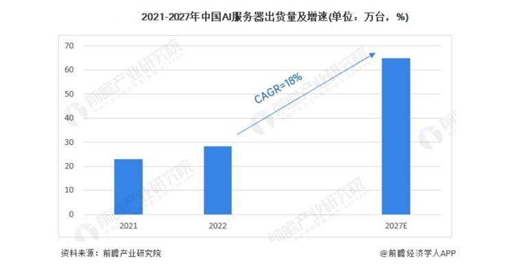 预计到2027年,中国AI服务器出货量将达到65万台,2022-2027年年均复合增长率(CAGR)约为18%。