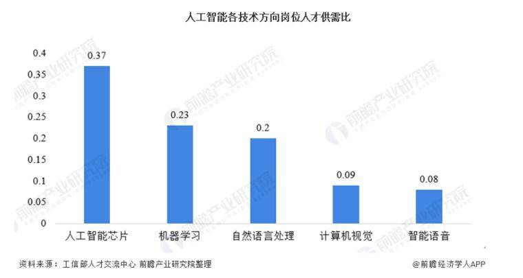 工信部发布的数据显示,人工智能不同技术方向岗位的人才供需比均低于0.4,说明该技术方向的人才供应严重不足。从细分行业来看,智能语音和计算机视觉的人才供需比甚至低至0.08、0.09,100多个岗位抢1个人,相关人才极度稀缺。