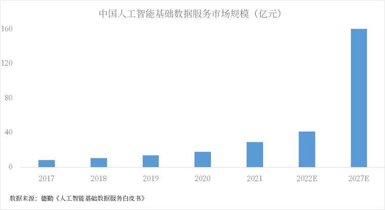 在AI人潮带动下,中国人工智能基础数据服务市场预计将由2021年的30亿元,到2027年大增至130-160亿元,有超过400%的增长空间。