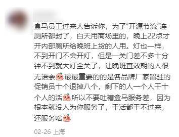 不光是对亏钱的门店下手,在日常生活中,盒马也是能省则省。