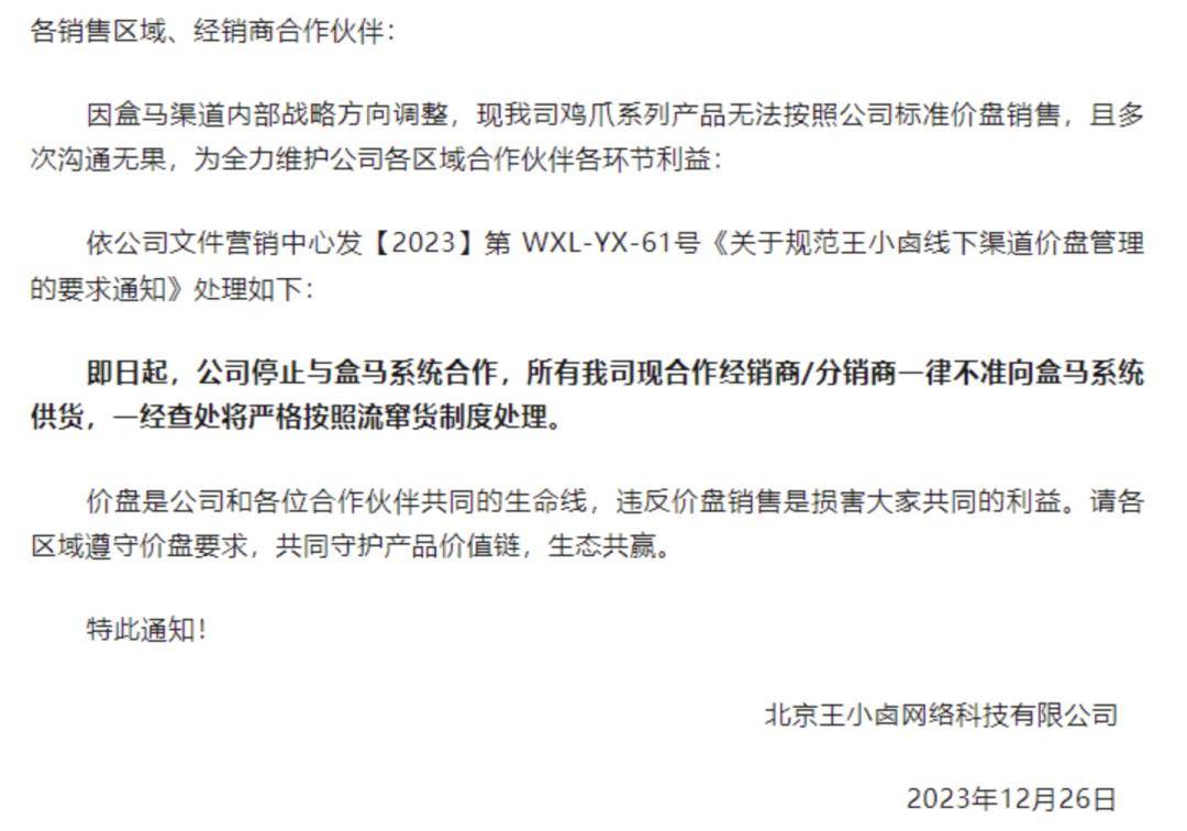 曾经公开断供的王小卤,转头又和盒马牵上手了。盒马还顺便谈下了百世、玛氏。。。