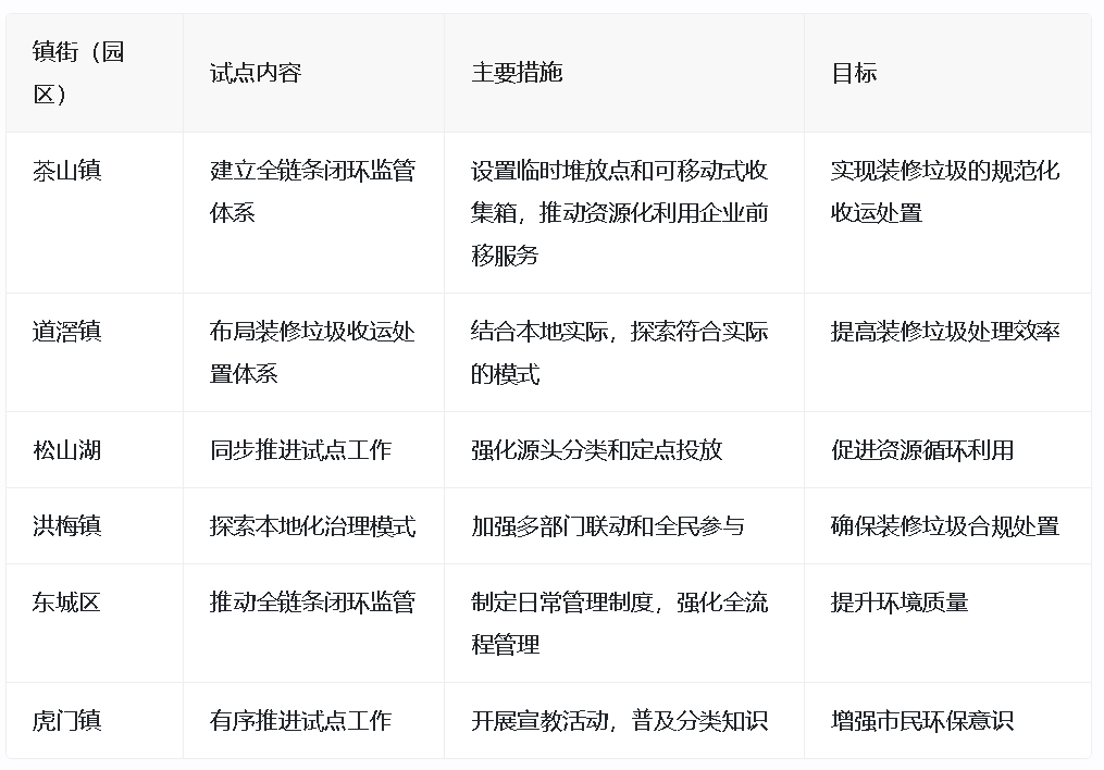 为解决装修垃圾处理难题,东莞市近期以茶山、道滘、松山湖、洪梅、东城、虎门等镇街(园区)为试点,探索建立源头分类、临时贮存、规范运输、环保处置的全过程闭环监管体系。这一创新举措标志着东莞市装修垃圾治理工作迈入新阶段。