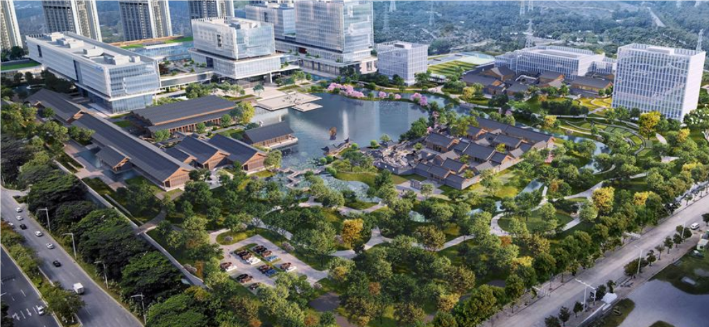 vivo研发中心占地面积179亩,包括企业总部、职员公寓及相关配套设施。截至2024年12月,幕墙、装修、机电工程已完成95%,室外园林绿化完成90%。这一进展显示出项目施工的高效与顺利。vivo培训中心占地224亩,涵盖了莲湖书院、企业展览馆及配套设施。截至2024年12月,装修、机电工程完成40%,室外园林绿化完成45%。尽管进度较研发中心稍慢,但整体建设仍在稳步推进。整体设计旨在打造一座“花园中的微型人文城市”。园区借景周边山林秀色,通过花园自然美景将园区与城市公共空间串联起来,营造出一个与自然环境相互融合、高效高质的办公环境。
