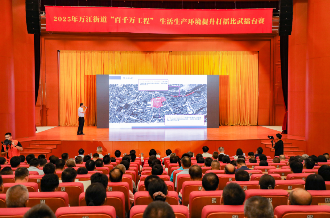 在5月8日硝烟弥漫的擂台赛现场,万江街道11个社区展开了一场刀刃相见的环境提升攻坚战。党组织书记们携带着数据化成果矩阵与可视化改造方案短兵相接,从万江到黄粘洲的基层治理团队在聚光灯下亮出真功夫——这场以"百千万工程"为战场的比武较劲,将街道年度环境整治推向白热化阶段。胜利社区以碾压性优势摘得魁首,其创新性提出的"三线整治+智慧停车"双轨模式赢得评委团全票认可,谷涌社区凭借农房风貌提升工程的工业设计美学突围获亚军,小享社区则靠"四小园"生态链建设逆袭跻身三甲。