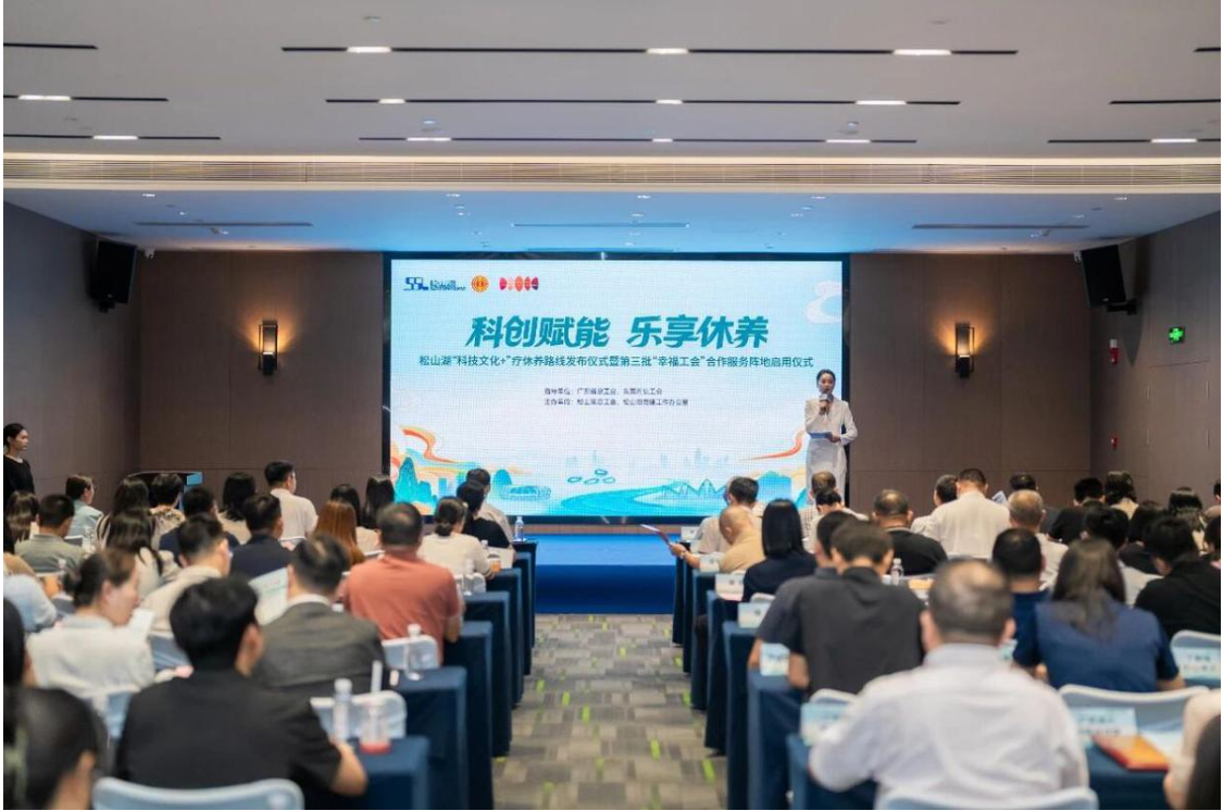 9月12日,松山湖举行“科技文化+”疗休养路线发布仪式暨第三批“幸福工会”合作服务阵地启用仪式。省、市总工会,松山湖党工委管委会相关负责人,以及镇街总工会代表、园区基层工会代表等近百人齐聚现场,共同见证松山湖总工会在产城人文融合领域和职工权益保障的全新突破。
