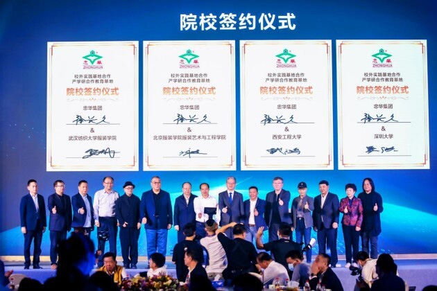 同时与武汉纺织大学服装学院、北京服装学院服装艺术与工程学院、西安工程大学、深圳大学等举行了“校外实践基地合作”、“产学研合作教育基地”的签约,共同为产业互联发展赋能。
