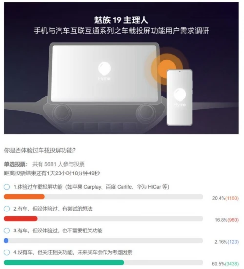 (魅族 19 主理人发起「你是否体验过车载投屏功能?」投票)