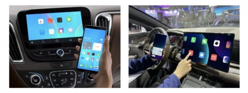 不仅如此,网友@用户656351756 还分享了其对于车载投屏功能的设计图,可以看到,这两张设计图的共通点都在于汽车中控台能够实现手机上的多种应用,并且还能带来更加广阔舒适的视觉体验。