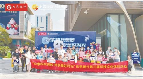 本期“探索科技奥妙 共享美好时光”第三届科技文化体验活动,由东莞银行独家冠名,东莞报业传媒集团主办,东莞哈一代玩具支持。在汇金楼讲解员的带领下,家长与孩子近距离感受黄金文明的古老传承,通过人体感应互动、图文陈列、影像视频和空间投影等多样形式,感知黄金文化,了解东莞婚俗。