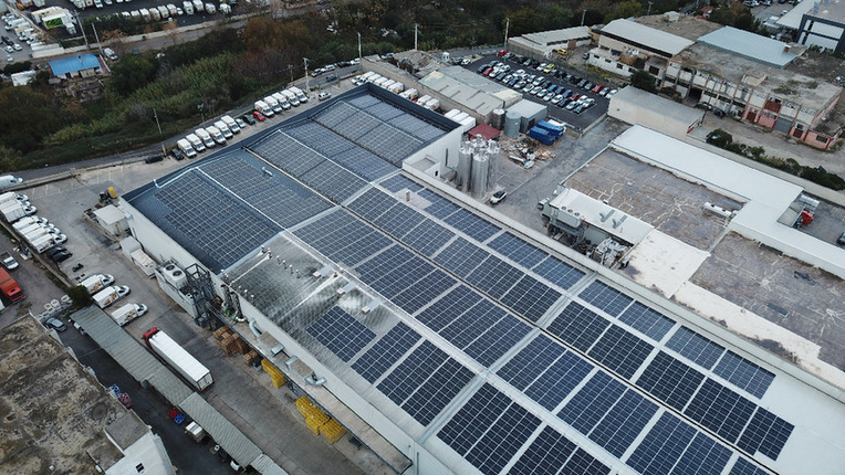 这是11月29日在希腊雅典郊区拍摄的安装在斯泰伊乌家族有限公司工厂屋顶的太阳能面板(无人机照片)。欧洲能源价格不断上涨,令希腊经济社会生活深受影响。在这一背景下,依托每年充足光照的自然优势,希腊光伏发电产业迎来较快发展。未来几年,希腊政府计划增加更多大型项目以加快绿色转型,同时面向家庭和农户等群体推广小型电力自产项目,并制定面向企业和弱势群体的补贴计划。新华社发(莱夫特里斯·帕察里斯 摄) (来源: 经济参考报)