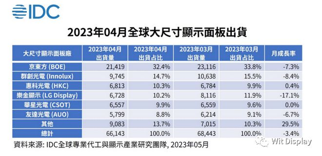 IDC全球专业代工与显示产业研究团队资深分析师陈建助表示,大尺寸显示面板2023年第一季出货降到2015至2019年末以来的最低点,但面板客户在第二季已释出策略性采购。