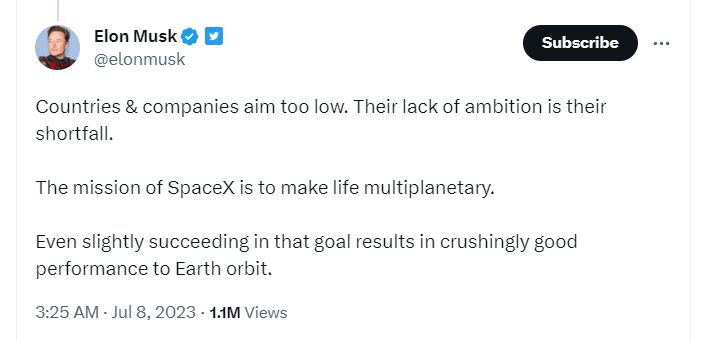 马斯克对有关“垄断火箭发射市场”的新闻回应称,是竞争对手太没野心了,SpaceX的使命是让生命多行星化。