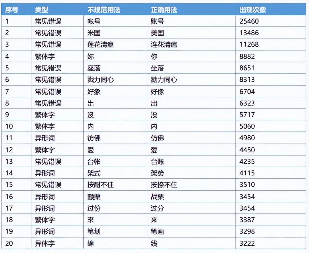 根据澎湃新闻在今年 6 月发布的《网络不规范用字用词现象研究报告》,“帐号”这种不规范用法排名第一,由此可见,不只是网络用户,就连微信和百度的服务协议也出现类似问题。