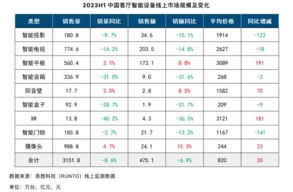 伴随这样的一场技术论战,上半年,智能投影市场量额齐跌: