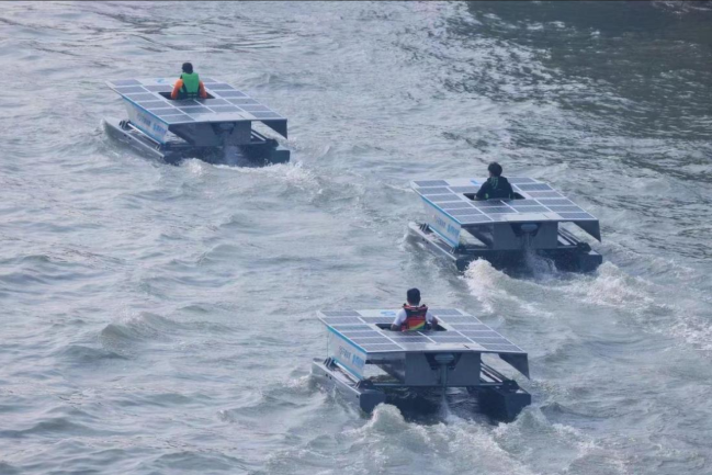 本次参赛船艇为6条完全由中国制造的竞赛版太阳能动力艇,采用双体船船型、轻量化设计,阻力更小、稳定性更好。船身长3.7米,宽2.4米,重300公斤。船体表面全覆盖太阳能电池板,搭载逸动科技E系列磷酸铁锂电池和NAVY 3.0 Evo船外挂机推进装置,直接将太阳能转化为电能,为电动挂机提供动力,航速可达15公里/小时。