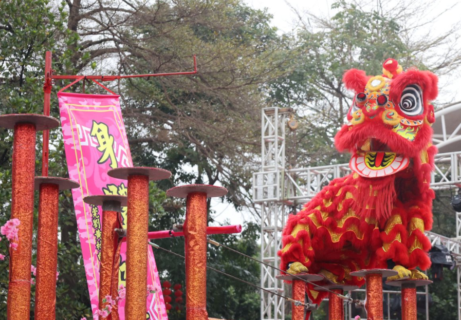 社戏是数百年来“何大仙诞”延承下来的重头戏,已由先前单一的木偶戏演变为粤剧、舞醒狮等节目演出。记者当天下午在村尾新时代实践广场看到,虽然下着毛毛细雨,但无碍市民的热情,不少村民一早就“担凳仔,霸头位”。随着激昂的锣鼓声响起,只见醒狮时而上下跳跃、时而摇头摆尾,野性十足,灵动风趣,向大家传递着平安和祝福,博得现场一片喝彩。