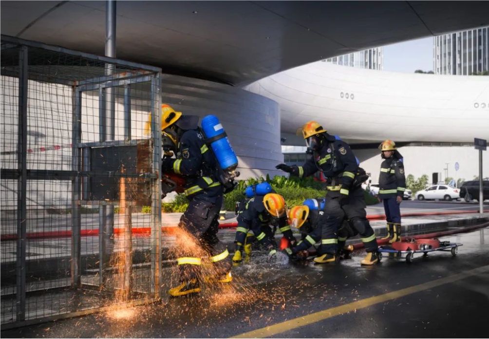 - 高层建筑灭火演练:模拟大型商业综合体高层建筑因焊割操作不当引发火灾的情景,演示疏散逃生、报警流程及消防救援过程。