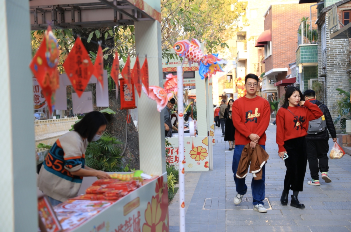 游客主要来自佛山、广州、惠州、深圳等地,他们对东莞记忆的年味和新潮玩法给予了高度评价。90后卡卡从南城过来,表示留莞过年期间会来这里感受年味并购买年货。土生土长的80后小黎则表示,东莞记忆唤起了她的童年记忆,今年新增的毛线打卡点和“许愿阿奇”成为热门拍照地点。