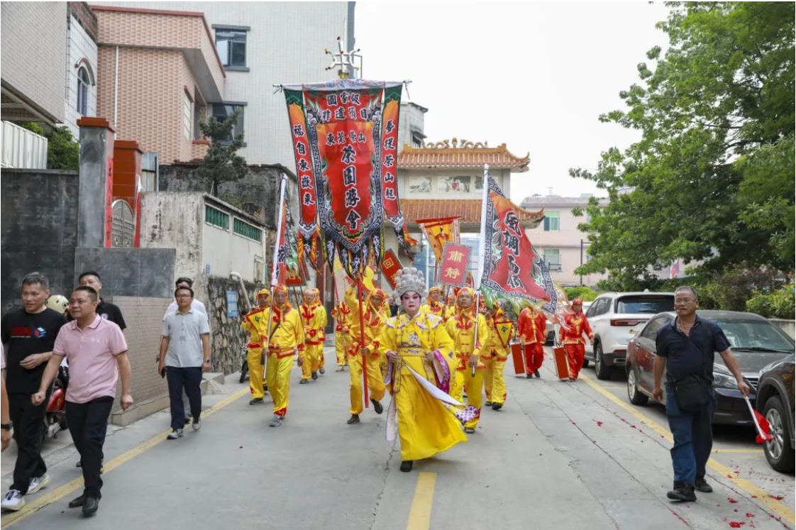 2025年4月21日,东莞茶山镇以一场声势浩大的"祈福乡村游"活动,正式拉开2025年茶园游会的序幕。锣鼓震天,歌舞翩跹,这场延续千年的东岳庙会变体,不仅吸引了本地村民倾巢而出,更引得周边城区游客蜂拥而至。作为茶山镇"百千万工程"的重要文化载体,活动首日巡游队伍贯穿增埗、寒溪水等六个村落,所到之处万人空巷。传统祈福方阵中,东岳大帝仪仗与"福禄寿喜"四神方阵交相辉映,而增埗村同步展演的农耕文化方阵,则用扁担、稻穗等道具,将乡村振兴战略具象化为可触可感的民俗符号。